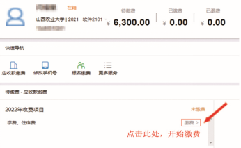 网上缴费时间:一般情况下,新生报到前一周开始缴费,请关注“学生缴费”网站的通知公告,其余同学在暑假或上学期间均可缴费。