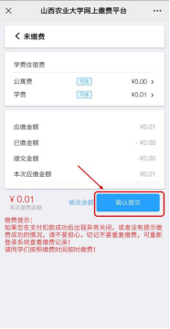 Ⅳ、选取需缴费项目,点击“确认提交”,系统自动调起微信付款