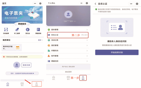 注:注册电子票夹的手机号必须和学生收费系统预留的手机号保持一致,如果学生缴费没有预留手机号或者预留手机号和电子票夹注册手机号不一致,在“电子票夹”中可进行“实名认证”(根据提示步骤进行操作),系统会根据学生身份证号进行票据归集
