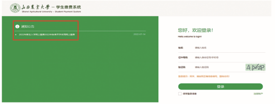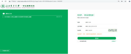 Ⅳ、在“学生缴费”系统网页中,输入学生姓名、证件号码(身份证号/手机号)、验证码,点击“登录”
