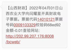 Ⅵ、同时系统自动开具电子票,开具成功后,学生手机会收到获取电子票信息的短信通知