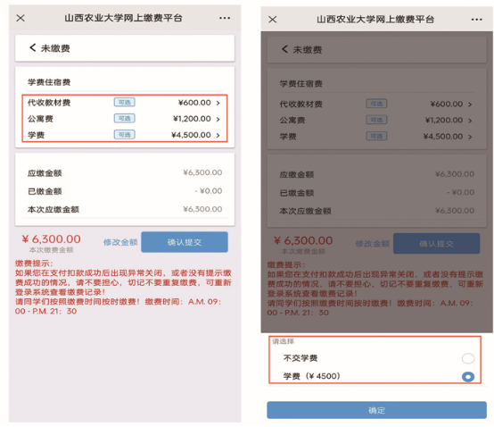 公费农科生的学费、公寓费、教材费三项费用不需网上交费,由学校统筹核算管理。