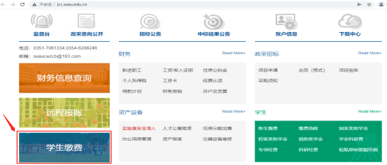 Ⅲ、在财务资产部网站中点击访问“学生缴费”栏