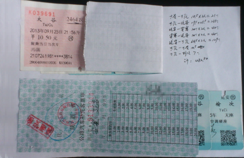 太谷-安塞的往返,空白处写清楚出差路径明细,如下图: