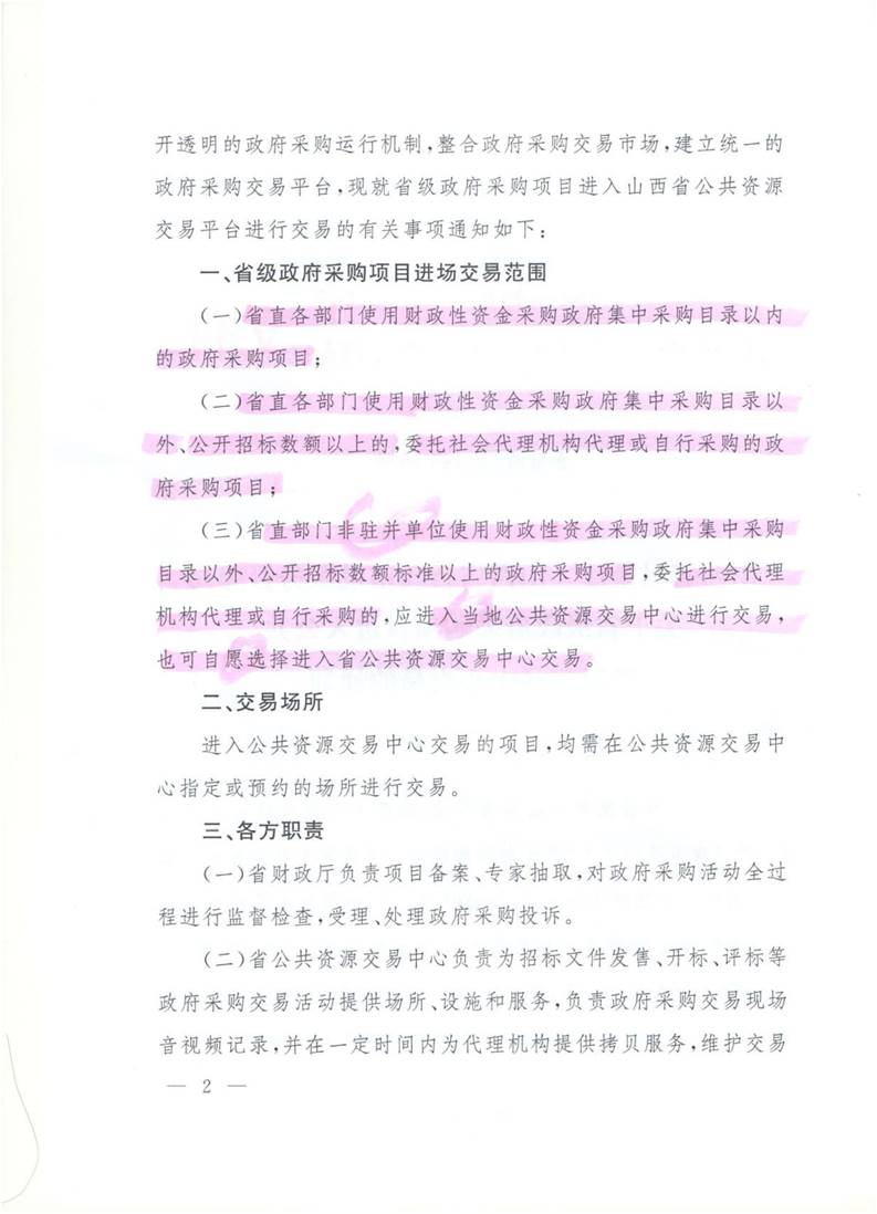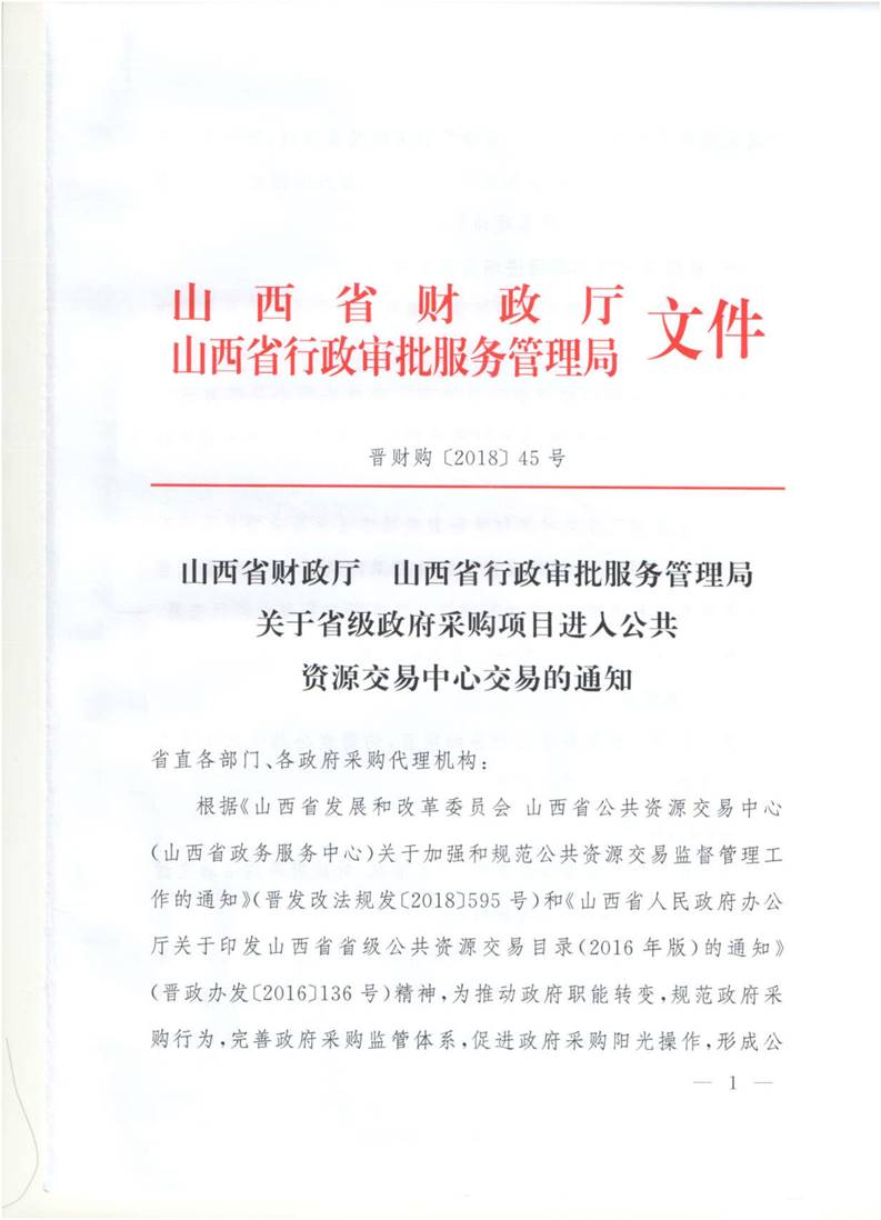 关于省级政府采购项目进入公共资源交易中心的通知(晋财购[2018]45号)